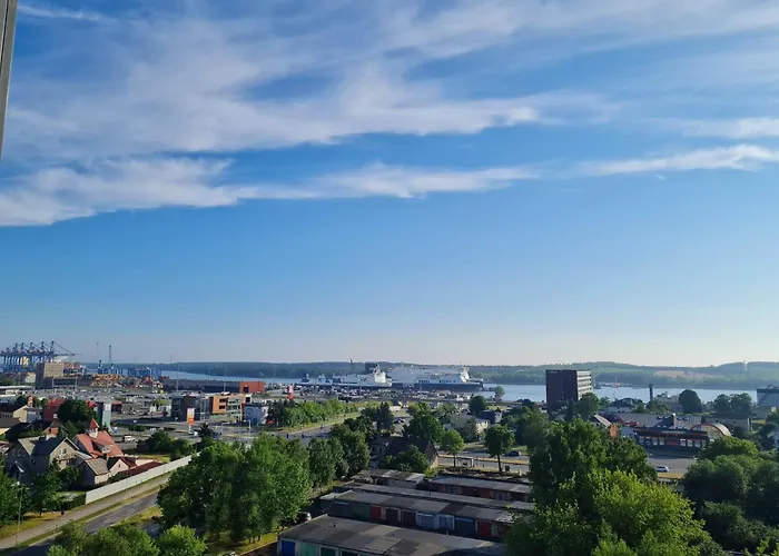 Stunning View Apartment Near Ferry To Smiltyne Klaipėda, di 70 m², che offre viste sulla città, si trova a una distanza di 4 km dal Museo del Mare a Klaipėda. L'appartamento dispone di una terrazza con viste sulla spiaggia sul mare.