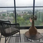 Stunning View Apartment Near Ferry To Smiltyne oferuje miejsce do pobytu dziennego, balkon i garderobę z widokiem na miasto oraz udogodnienia, takie jak klimatyzacja. Obiekt noclegowy wyposażony jest w oddzielną toaletę. Ponadto w łazience znajdują się suszarka do włosów i ręczniki.